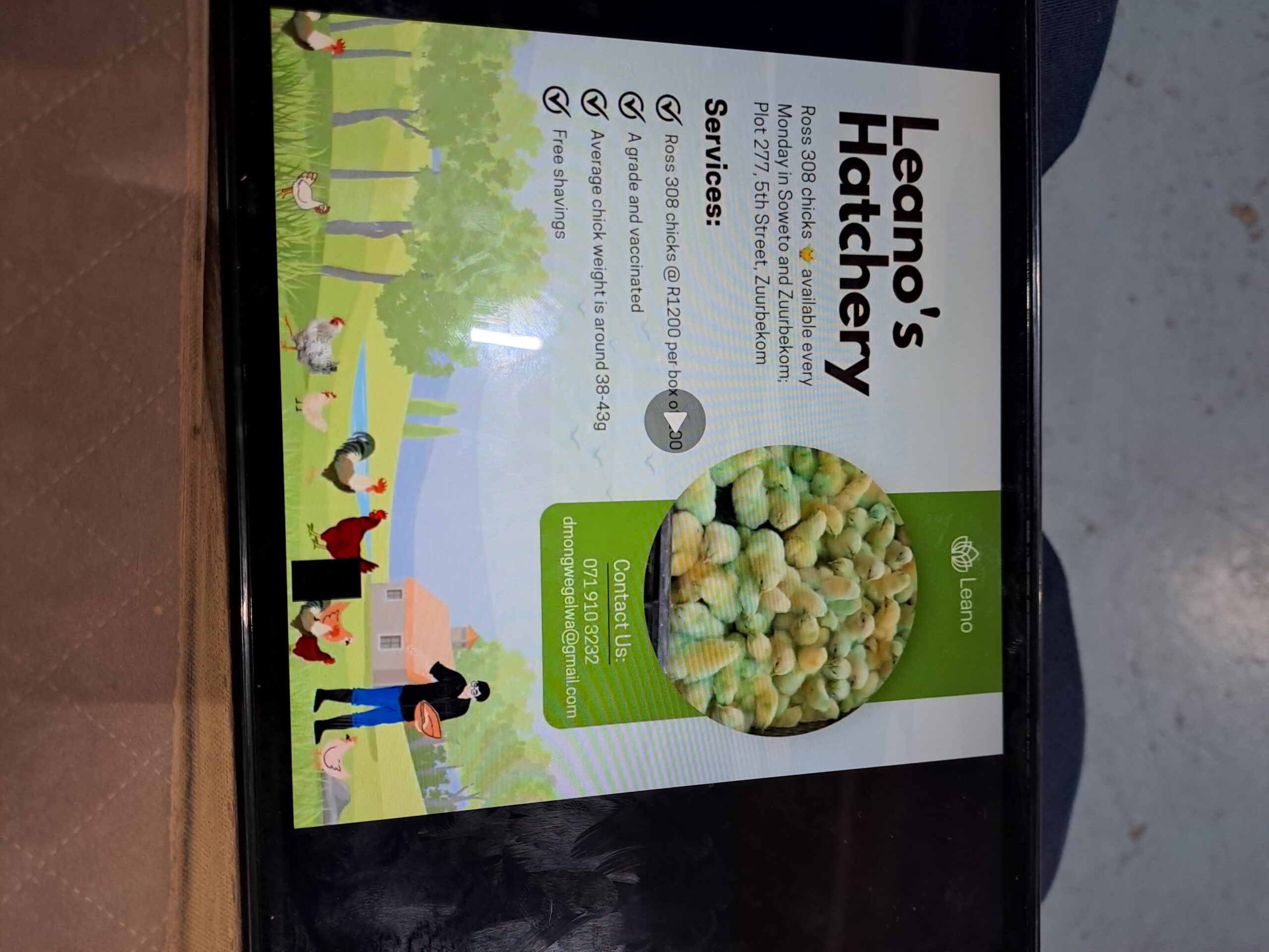 We are have hatcheries in Soweto and Zuurbekom